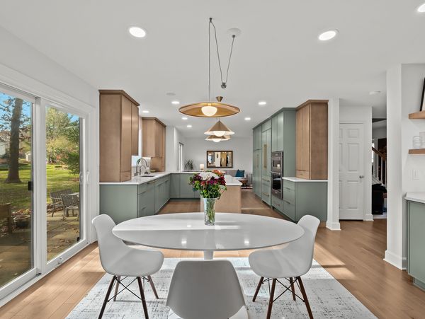 A bright, modern transformation that blends warm wood, soft sage, and an airy open-concept flow