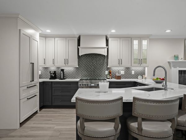 We turned this family's kitchen and living area into a open floor plan living space with a bar area and giant island for the family to gather around