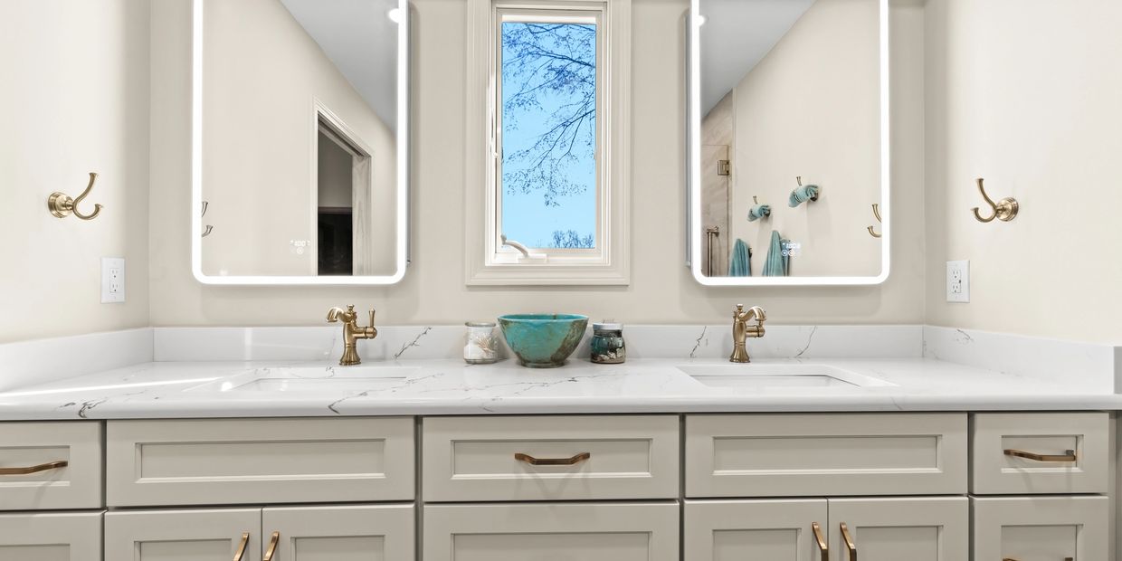This bathroom was once cramped and inefficient, with a small walk-in shower and toilet squeezed into one corner, while a large tub dominated the wall where the new vanity now sits. The layout didn’t work for the clients, who needed more functionality and a better flow. By reimagining the design, we created a spacious and luxurious shower, expanded the layout for ease of use, and introduced a stunning double vanity with ample storage. The addition of a new window not only brought in natural light but also revealed a breathtaking view of the lake—turning this bathroom into a tranquil retreat that combines practicality with beauty.