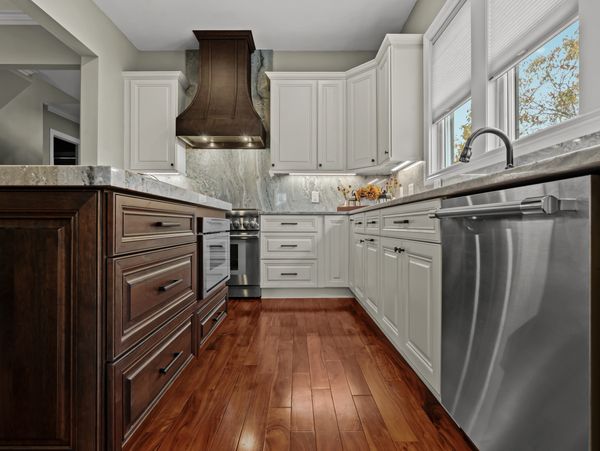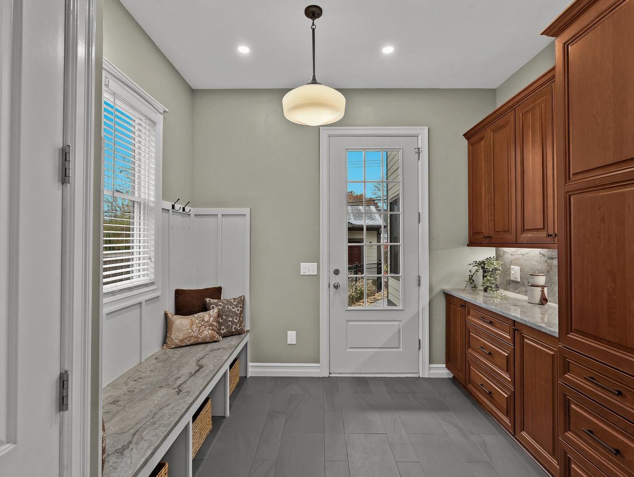 This comprehensive home remodel focused on elevating both the kitchen and the mudroom into spaces defined by luxury and functional efficiency. The kitchen was dramatically brightened with the installation of custom white shaker cabinetry and layered lighting, while the new focal point is a striking custom dark wood range hood set against a gorgeous quartzite backsplash and rich hardwood floors. Parallel to this upgrade, the adjacent mudroom was rescued from clutter and lack of appeal, now featuring built-in storage cabinets and a luxurious, durable quartzite benchtop. Together, these transformations deliver a beautifully cohesive living space that perfectly balances high-end design with practical, daily functionality.